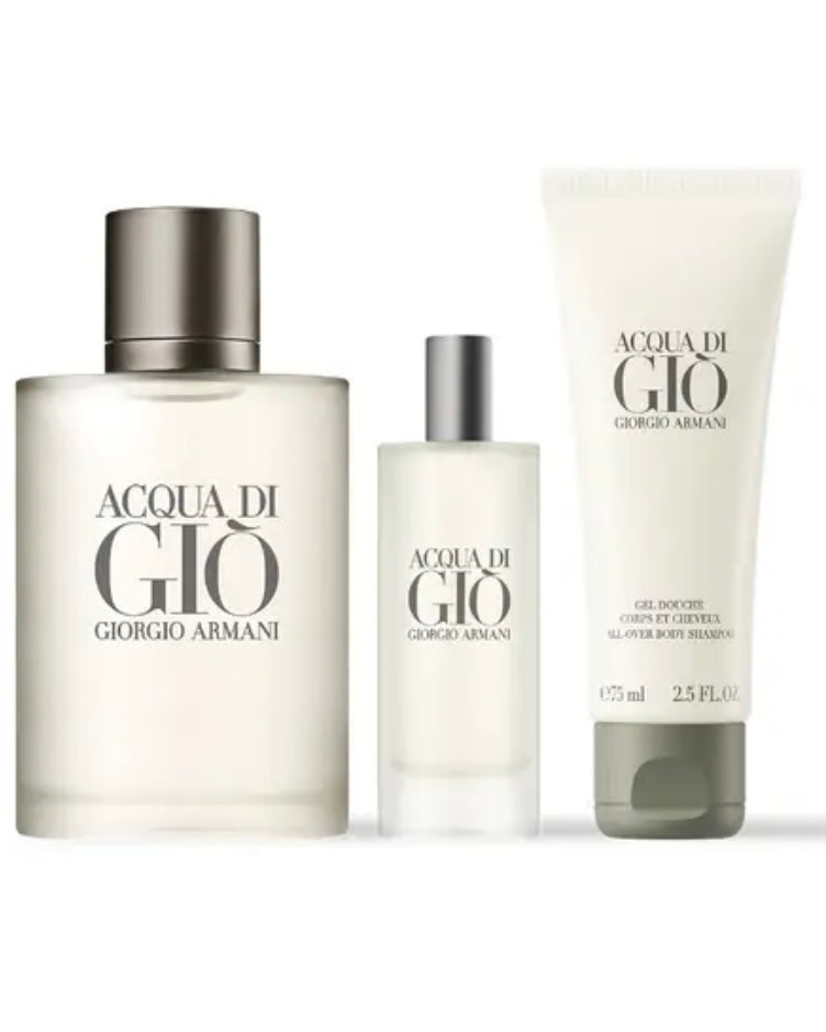 “Acqua di Gió” eau de toilette 100 ml + “Acqua di Gió” shower gel 75 ml + “Acqua di Gió” eau de toilette mini size 15 ml