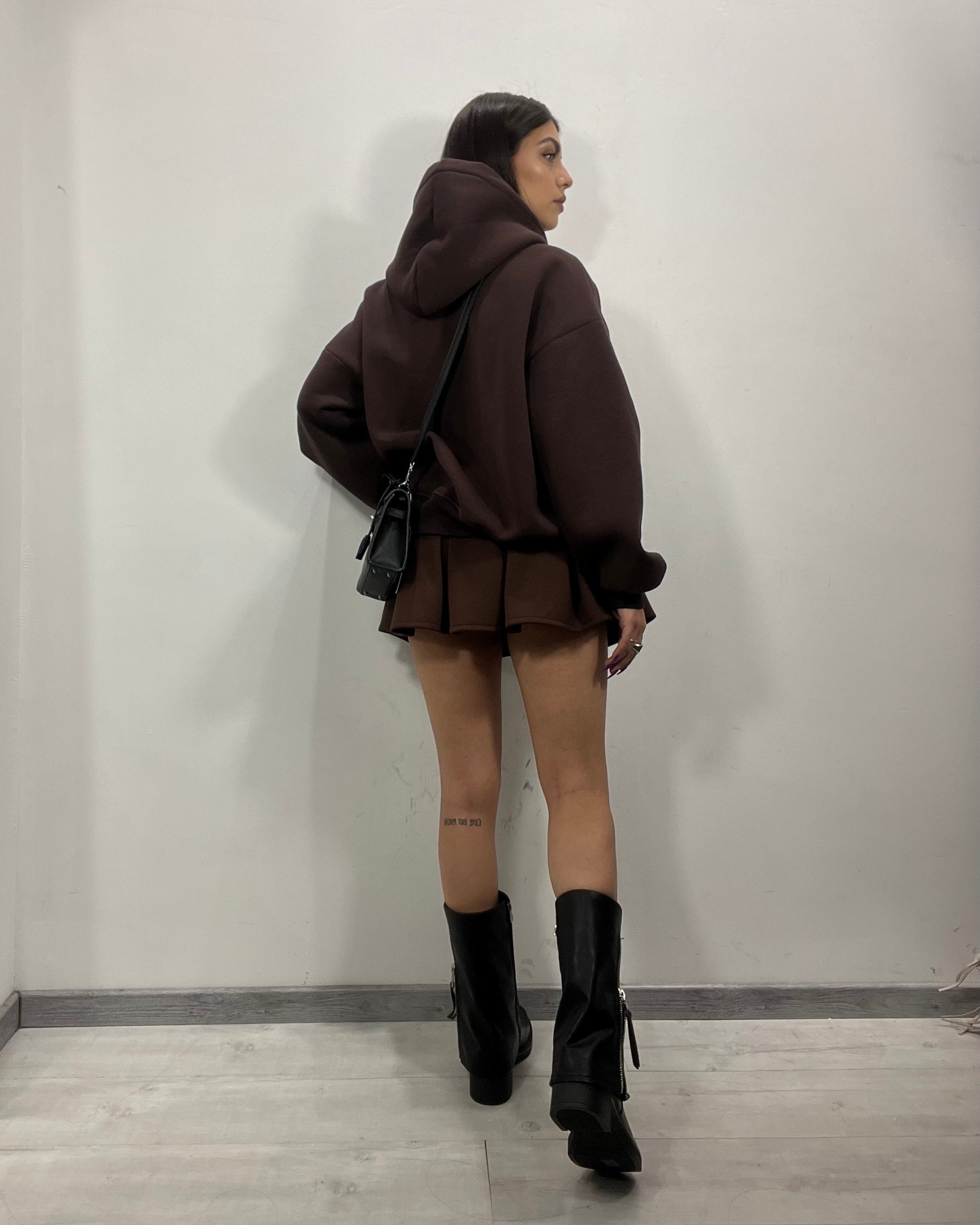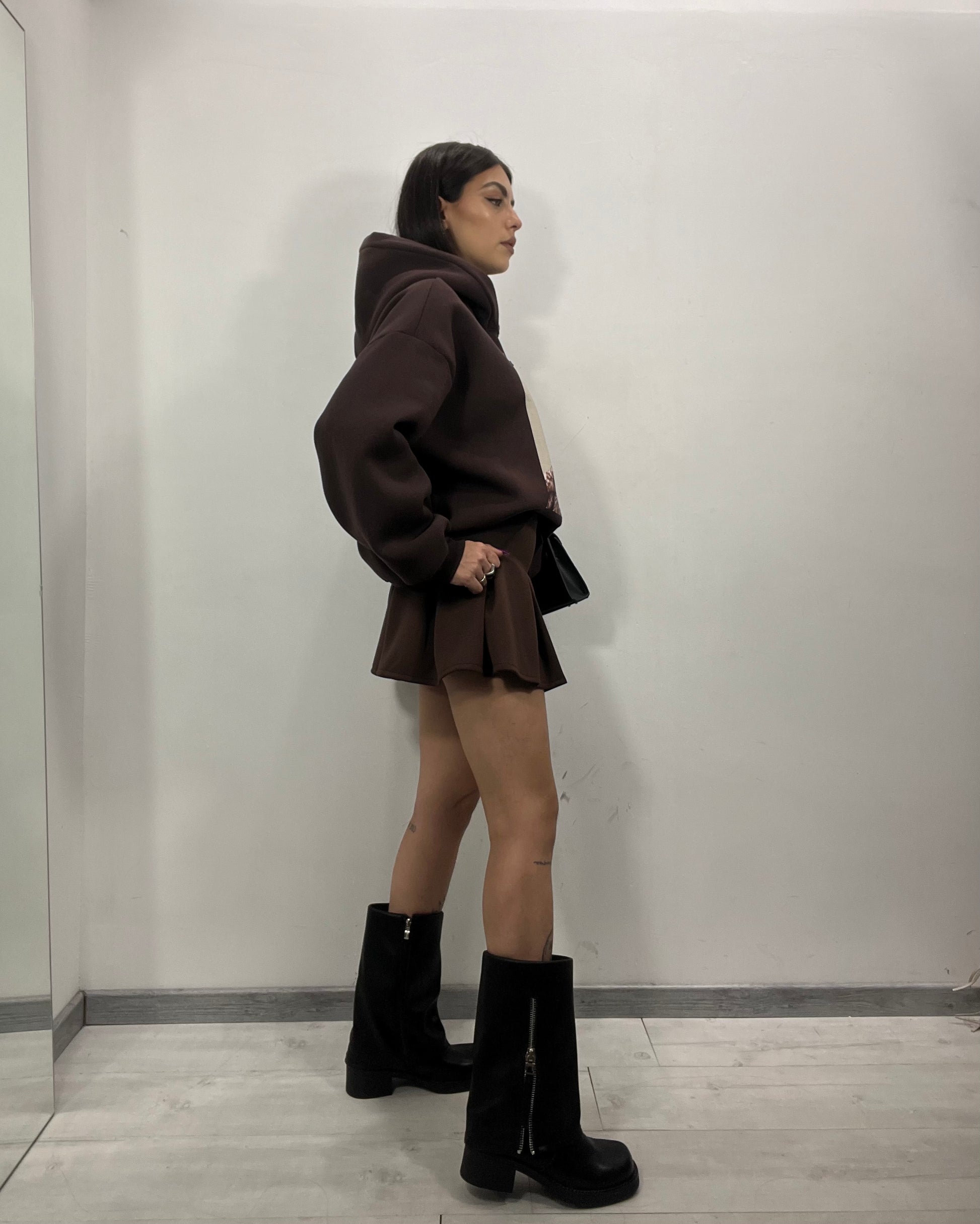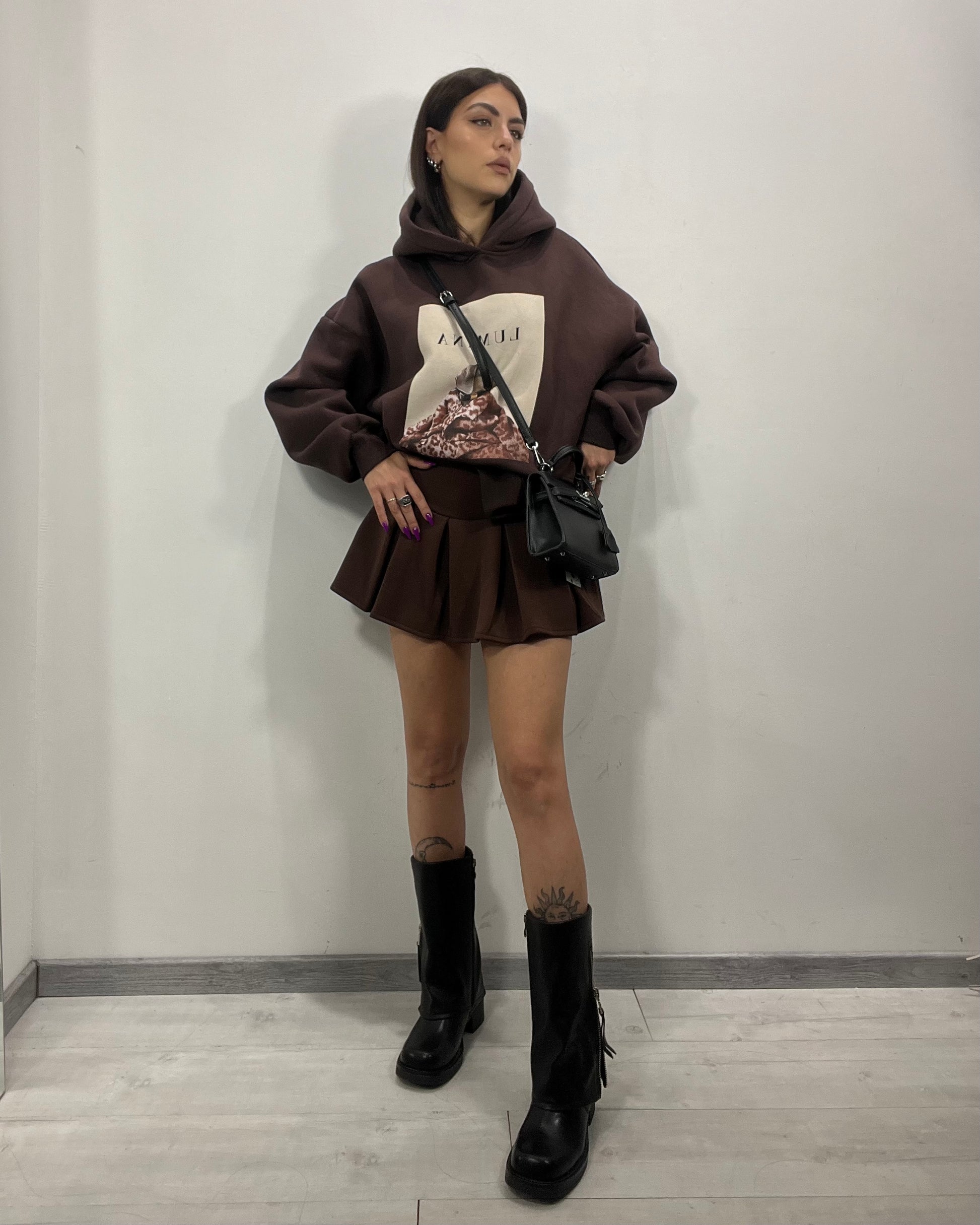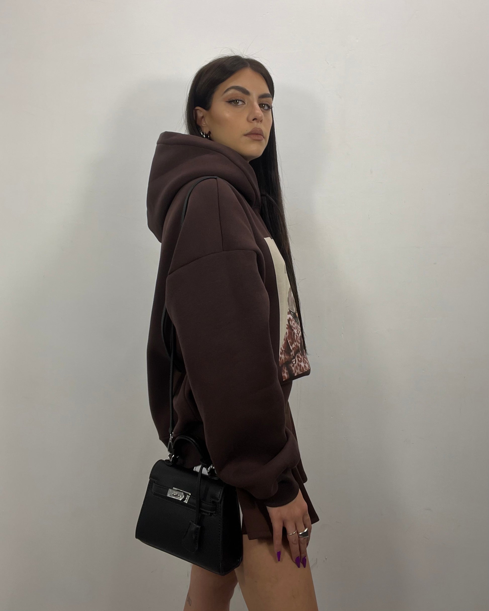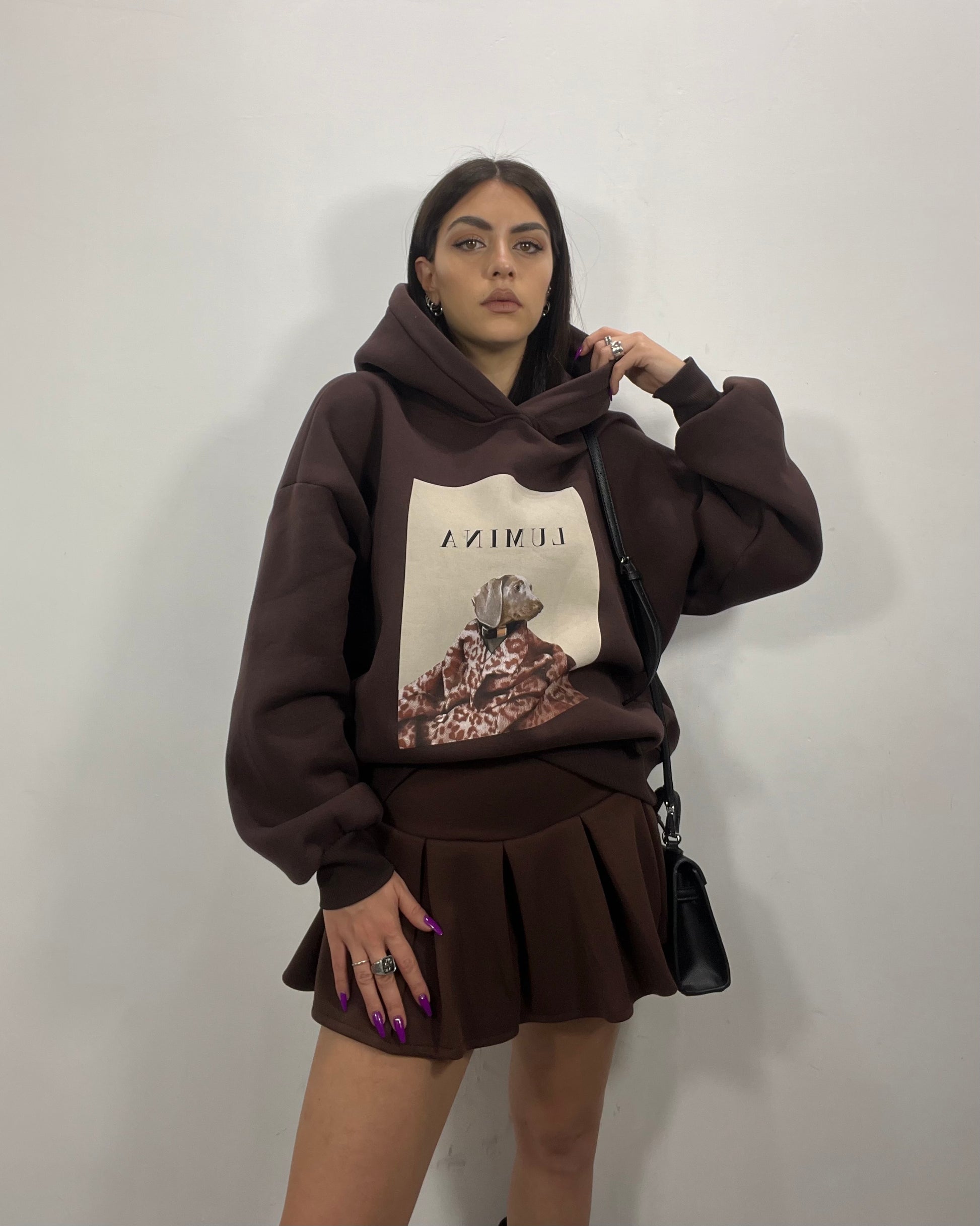 Felpa con stampa bassotto di Lumina in marrone cioccolato, disponibile in taglia unica