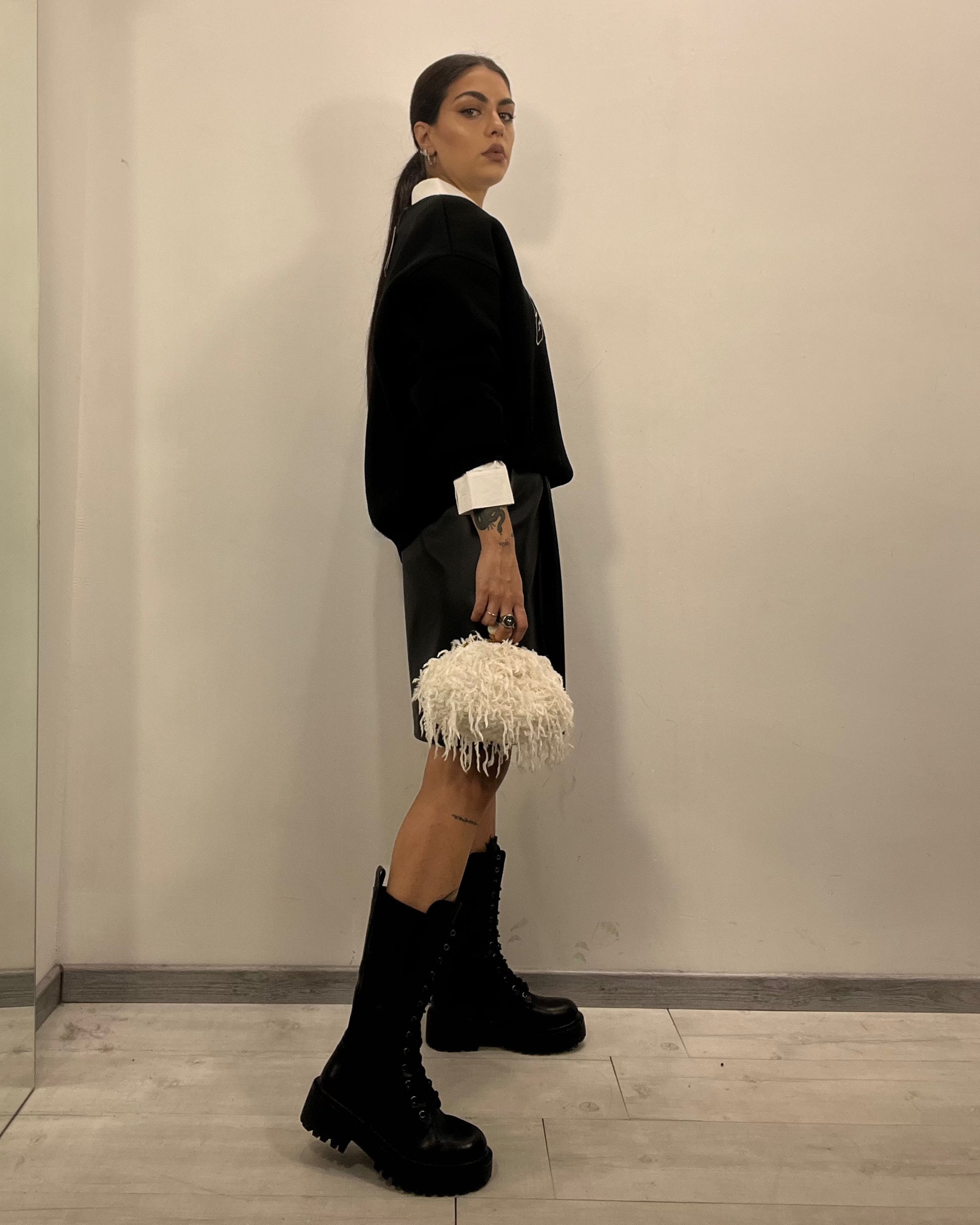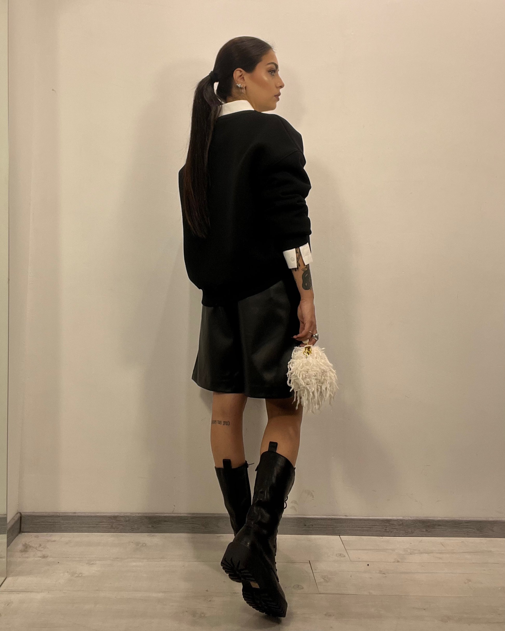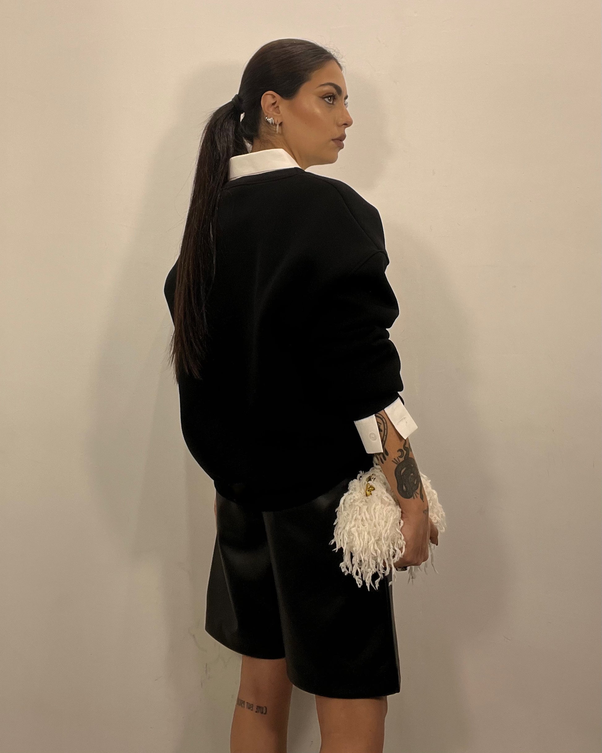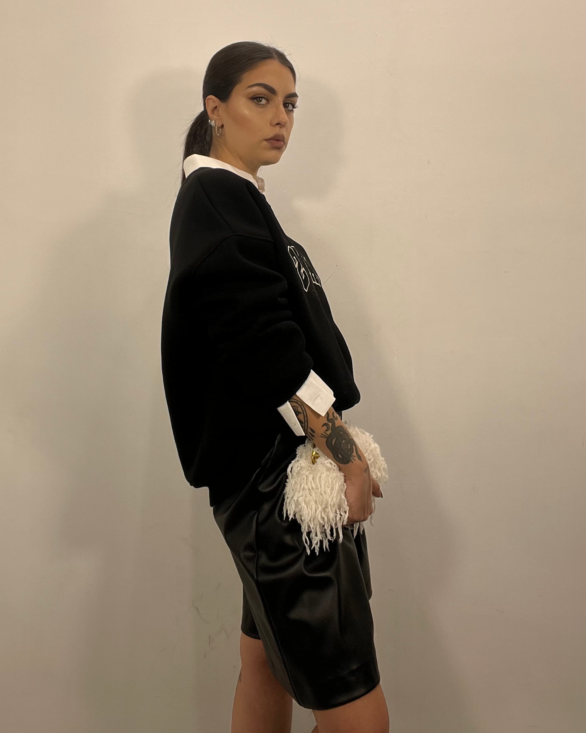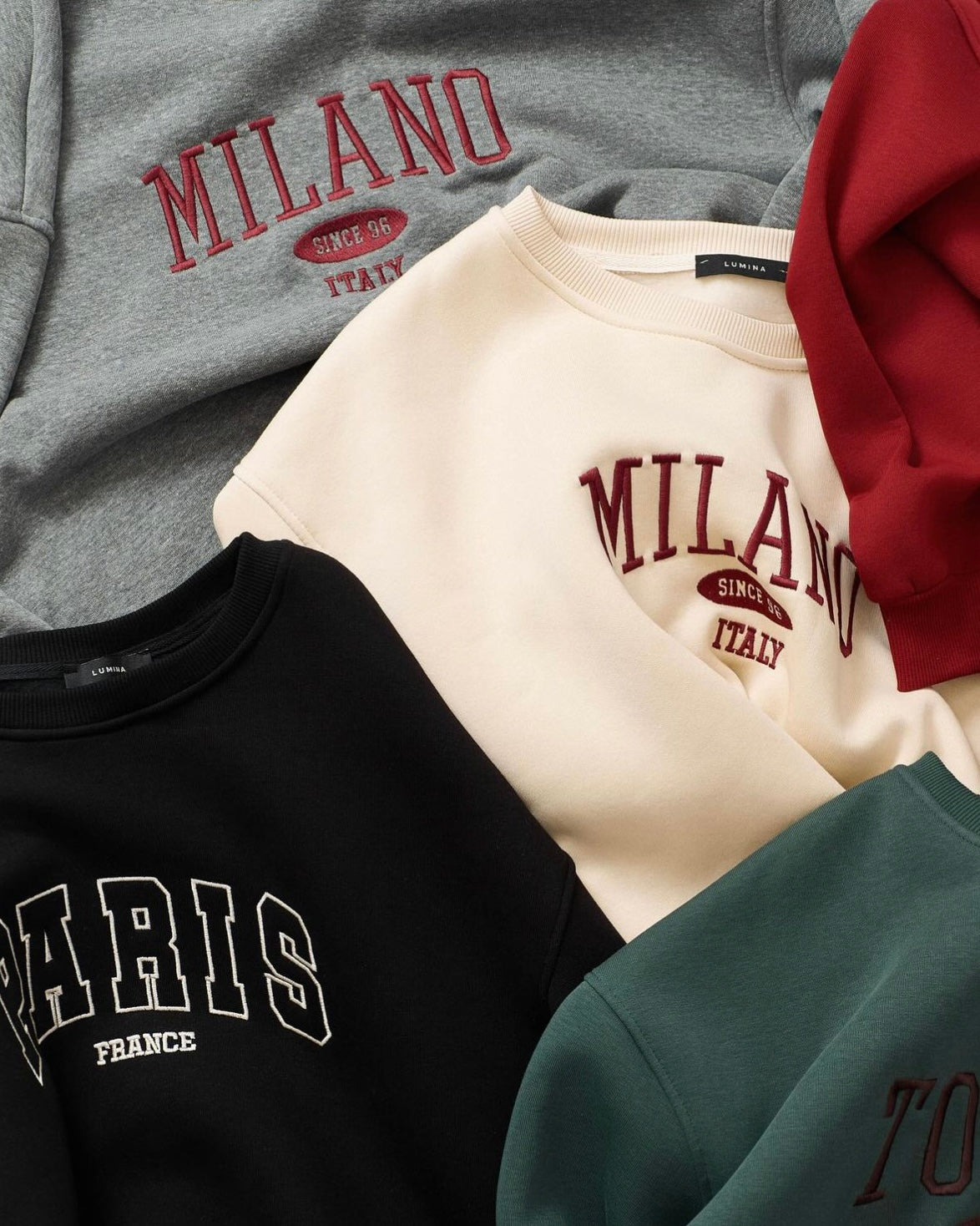 Felpa Paris senza cappuccio by Lumina con scritta ricamata base nera e scritte panna, interno in pile disponibile in taglia unica