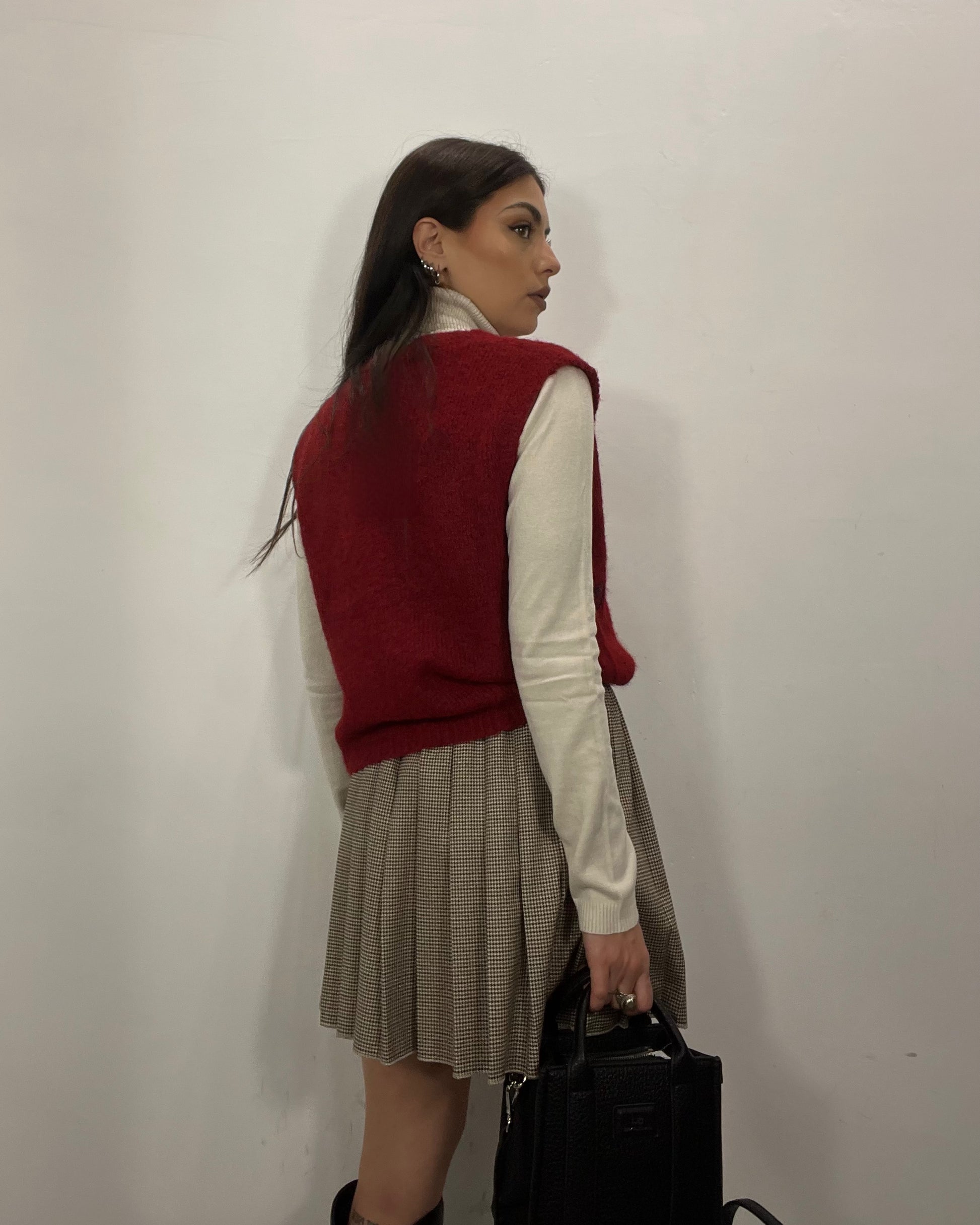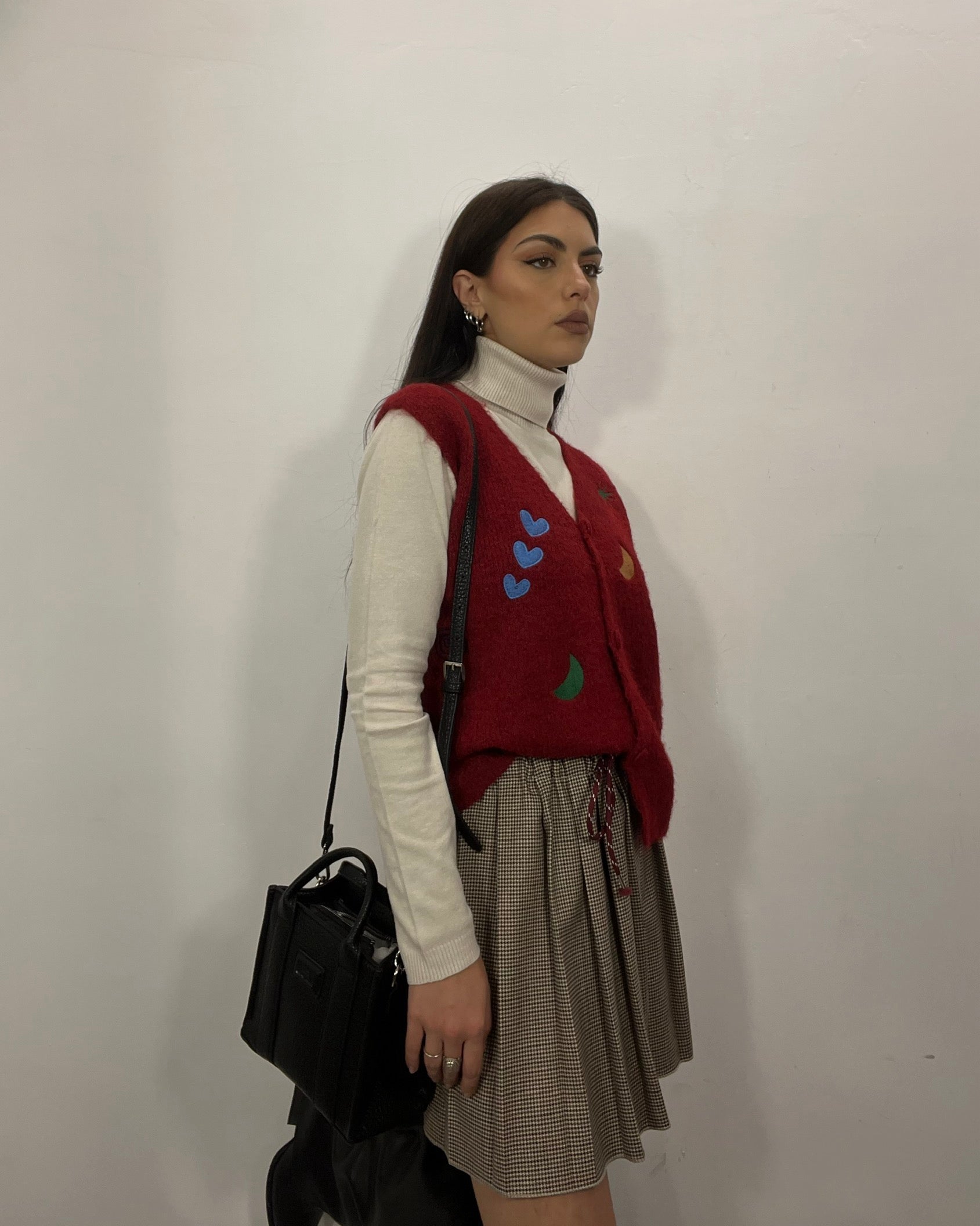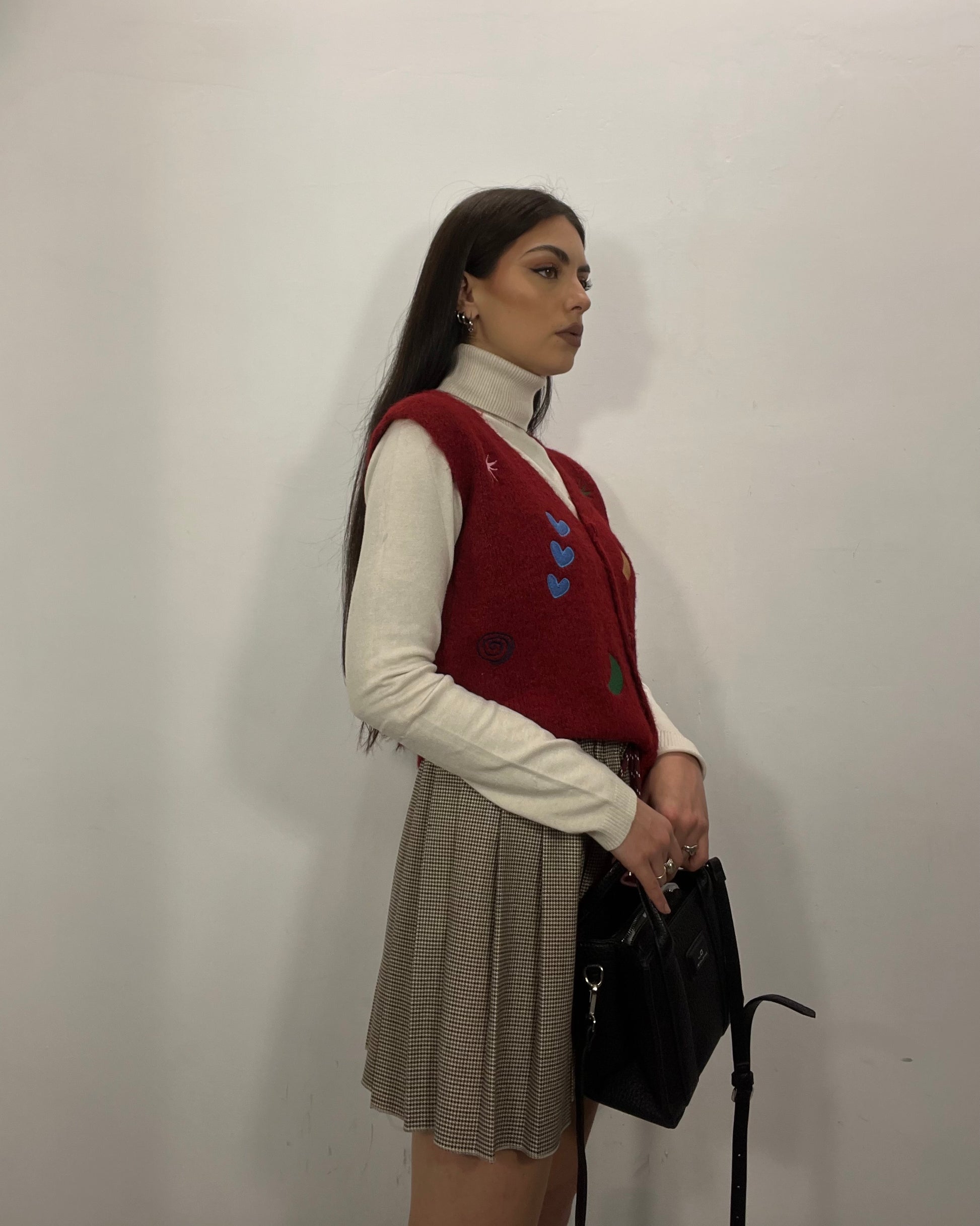 Gilet 3 bottoni rosso in taglia unica con ricami colorati