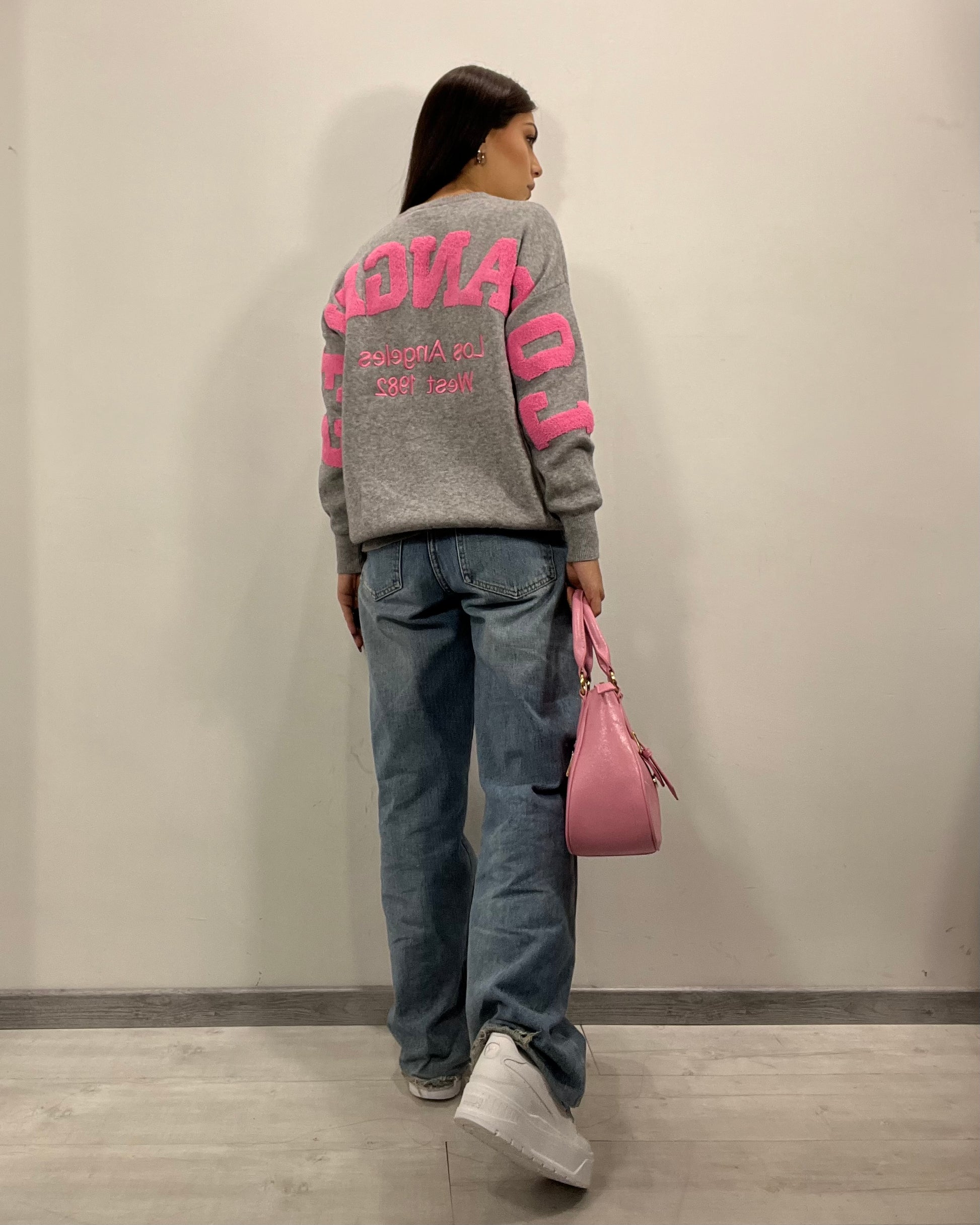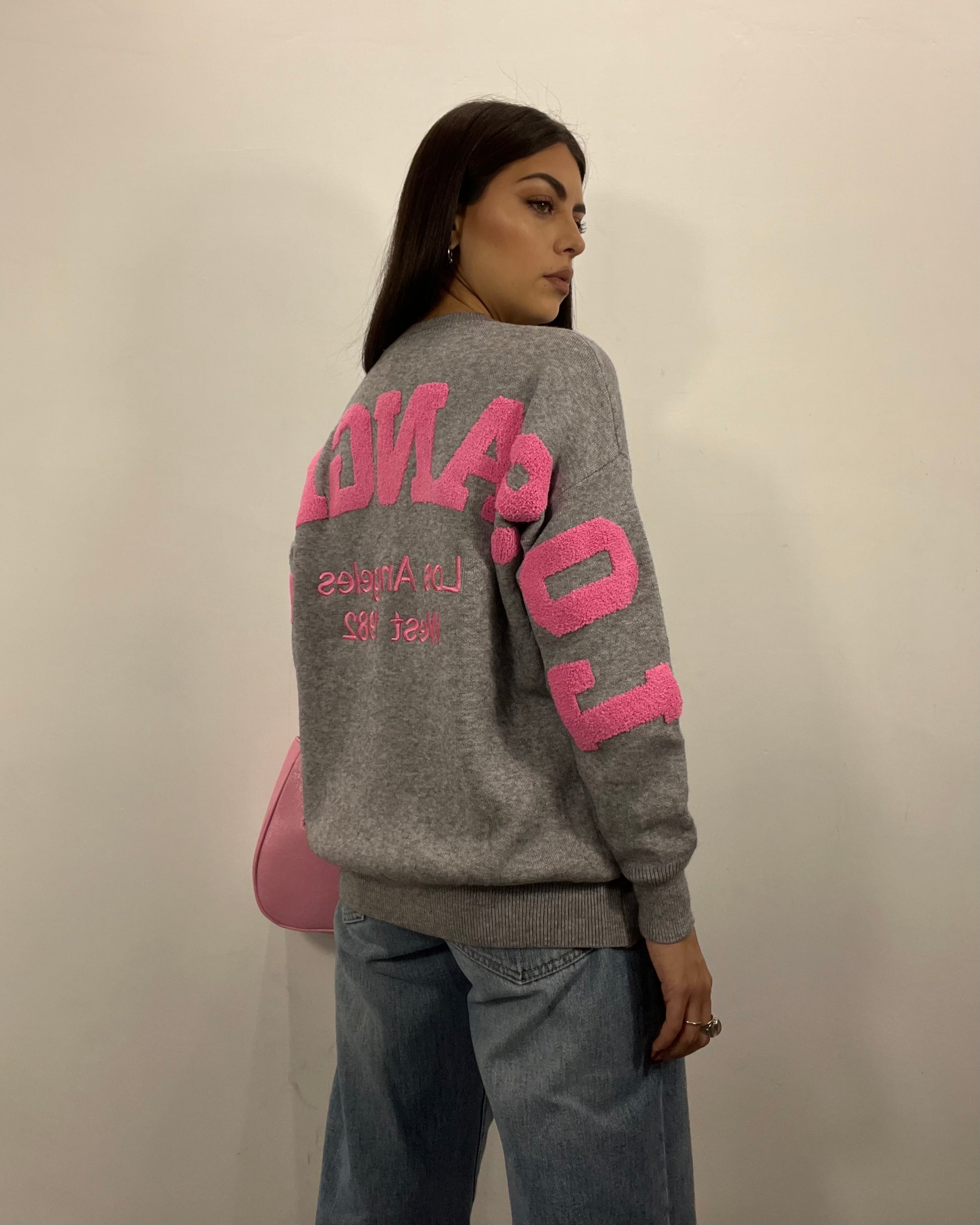 Maglioncino con scritta Los Angels sul retro. Disponibile in taglia unica.
