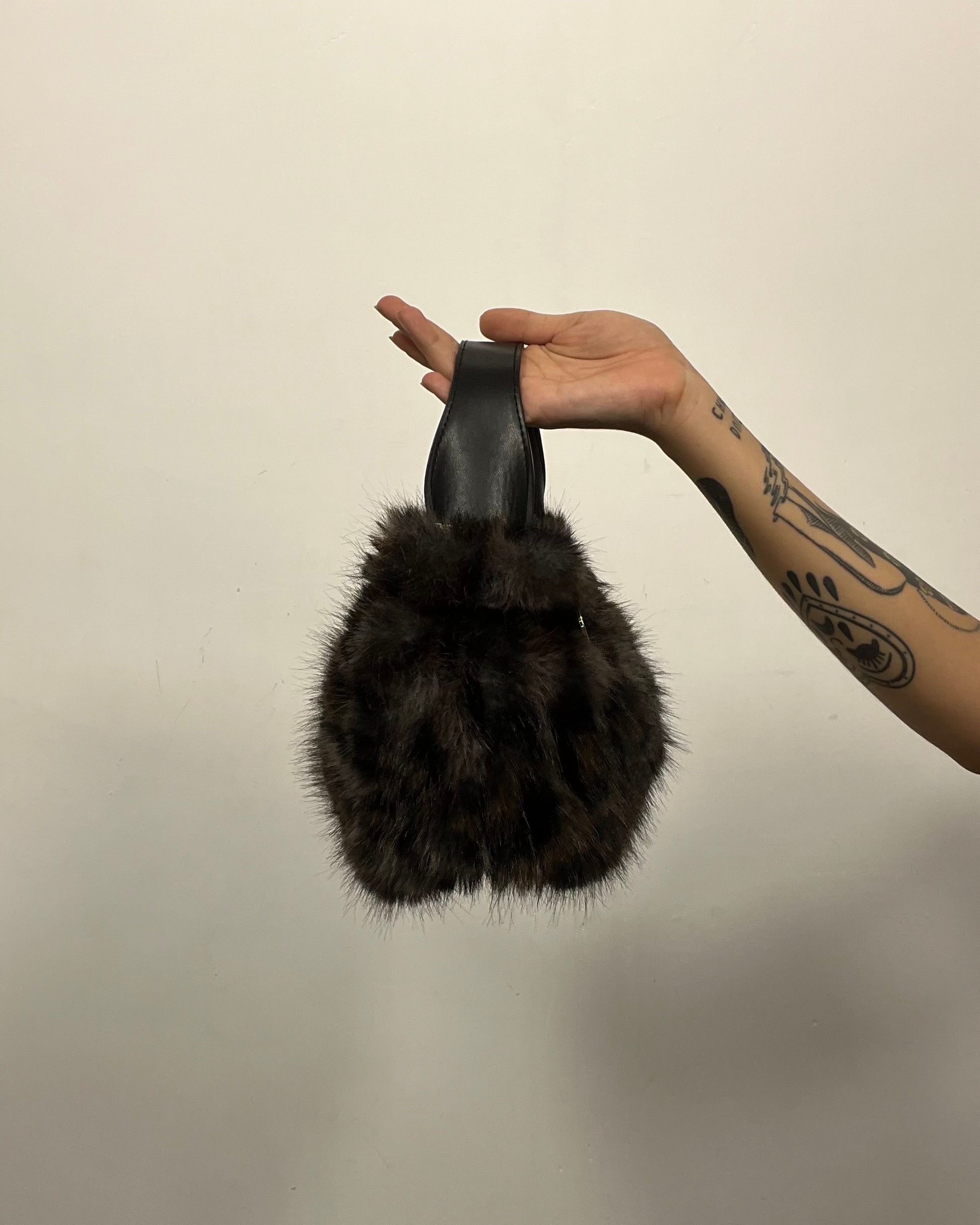 Minibag in eco pelliccia e manico in ecopelle. Dotata di tracolla a catenina oro. Disponibile in due fantasie e quattro colori. Misure: 29x28h